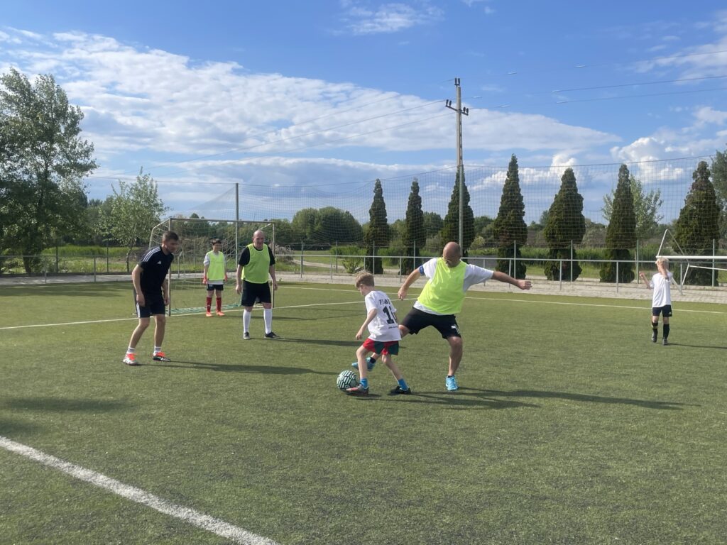 Egy másik nagyon fontos elsőről is be kell számolnom. Érkezett ugyanis egy megkeresés, Diától, hogy náluk a családban ő visel focicipőt, ő viszi edzésre, meccsre a gyermeküket, nem mellesleg játékvezető is, a férje nem szereti különösebben a futballt, úgyhogy számára evidens, hogy ő jön a fiával a táborba. Bevallom, hogy korábban is megfordult a fejemben, hogy ne zárjuk be a kapukat olyan gyerekek előtt, akiket egyedül nevel az édesanyjuk, ne legyen e tekintetben diszkriminatív az Apa-fia Focitábor. Viszont a fejtörést egészen Dia hívásáig nem követte tett, az ő telefonhívása, amely nagyon határozott és ellentmondást nem tűrő volt, viszont beindította a folyamatot. Abban maradtunk, hogy igaza van, jöjjenek! Ő pedig jött is Botonddal, vállalta e tekintetben az abszolút újonc szerepét, így már a második alkalommal történelmet írt, írtunk, ő volt az első édesanya az Apa-fia Focitáborban, aki teljes jogú tagként vett részt a programokon, tehát focizott, valamint szombaton még egy kis játékvezetést is bevállalt. Köszönjük, Dia!