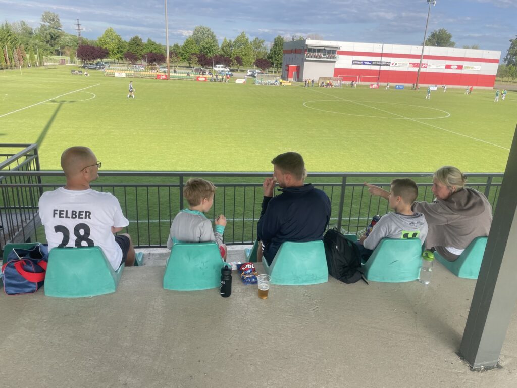 Ha már idő- és fontossági sorrendben haladunk (Apa-fia Focitábor, Lipót, OTP Bank Liga), akkor szombaton a mi 3,5 óra focink, valamint a Lipót meccse után még estére is maradt energia, hiszen a vacsora után közösen megnéztük az ETO–FTC meccset, amely eldöntötte a magyar bajnoki cím sorsát. Ezúttal Zéténynek és Bencének jutott egy kis szomorúság, hiszen ők a győrieknek szurkoltak, nekik tehát nem jött össze szombaton a „mesterhármas”. Ennek ellenére a vasárnapi, táborzáró sajtótájékoztatón már nagyon boldogan nyilatkoztak, egy-két mondatuk biztosan visszaköszön majd a jövőben a különböző közösségimédia-felületeinken, mert Zétinek két mondatban sikerült összefoglalnia azt, amit én hetek óta próbálok megértetni mindenkivel, hogy miről is szól az Apa-fia Focitábor.